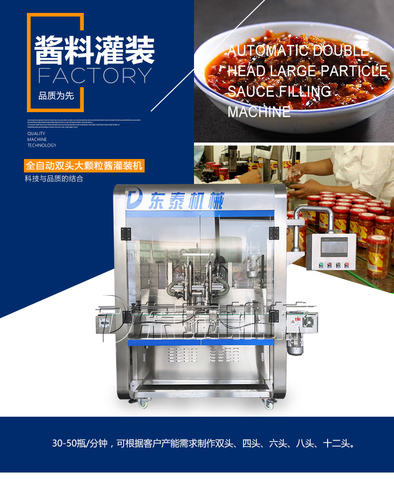 醬料行業(yè)市場日趨龐大,有非常的工作效率,來滿足客戶需求就顯的十分重要了,我們公司便能給您帶來這種的幫助,這款辣椒醬灌裝機(jī)灌裝機(jī)身為公司新生產(chǎn)制造的灌裝機(jī)在行業(yè)市場上發(fā)揮了重要的作用,辣椒醬灌裝機(jī)是集光,機(jī),電,氣于一體,選用活塞式定量原理,灌裝精確度高,使用比較簡單,維護(hù)非常方便,設(shè)備主要材質(zhì):選用SUS3